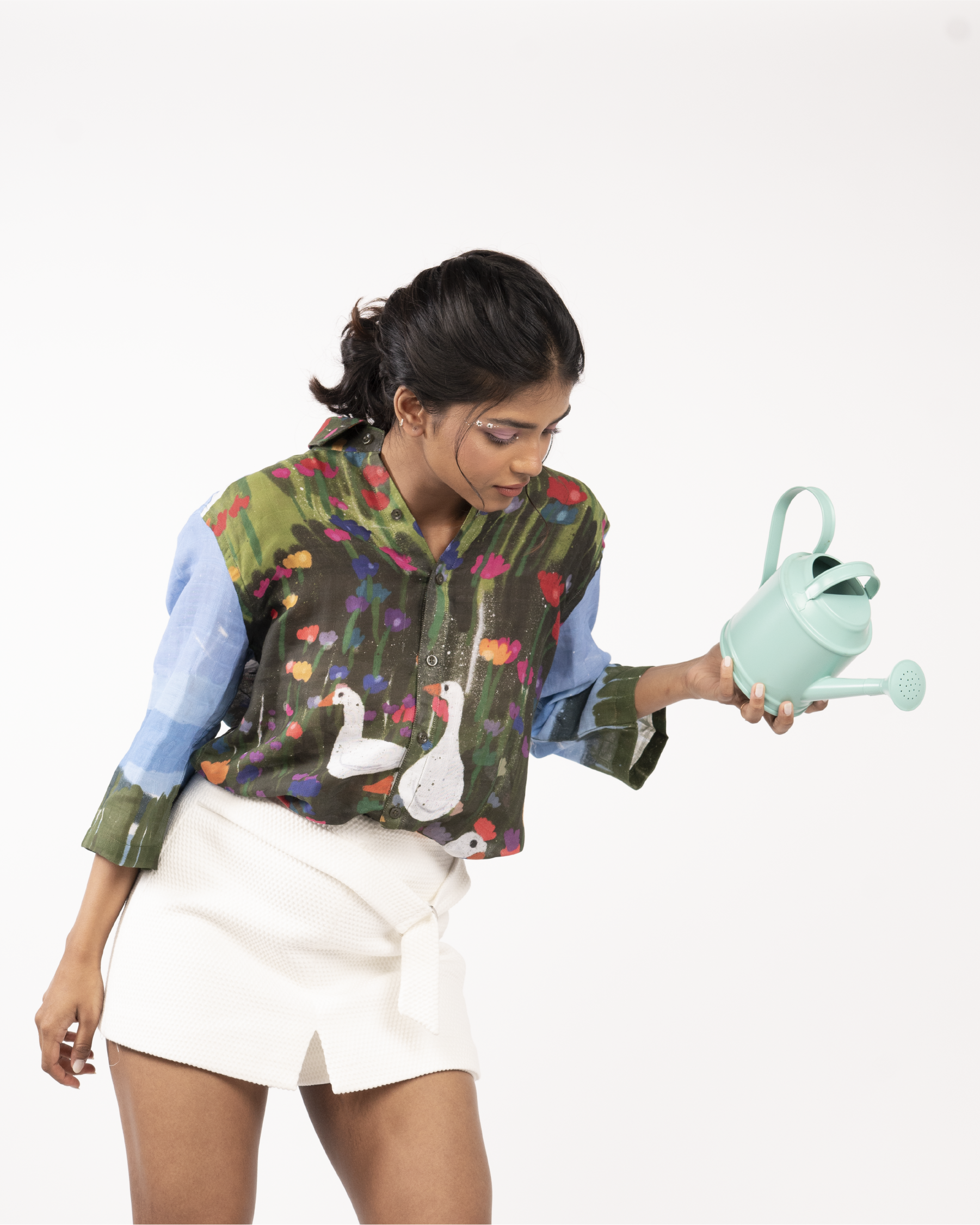 The colours on the fabric look different in different lights - please note that both the images are of the same shirt (shoot and studio flats) these look different in person as well. If you receive a product that looks like it's a different colour, please note that we check every batch and send it out - what we send you will be the final colour which is not a mistake.
