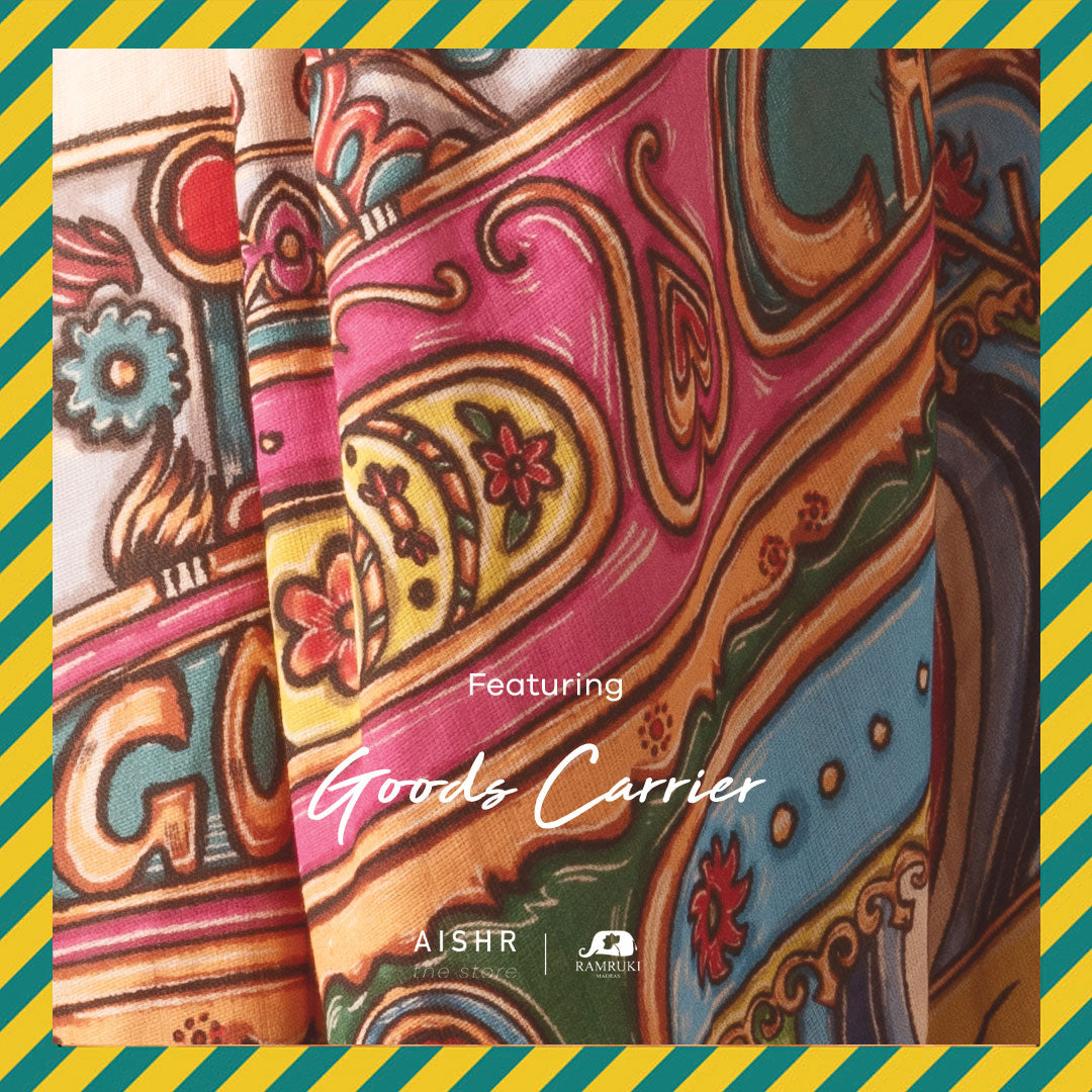 Order today - Goods Carrier is an exclusive Aishr print, printed on sustainable muslin fabric with biodegradable dyes.