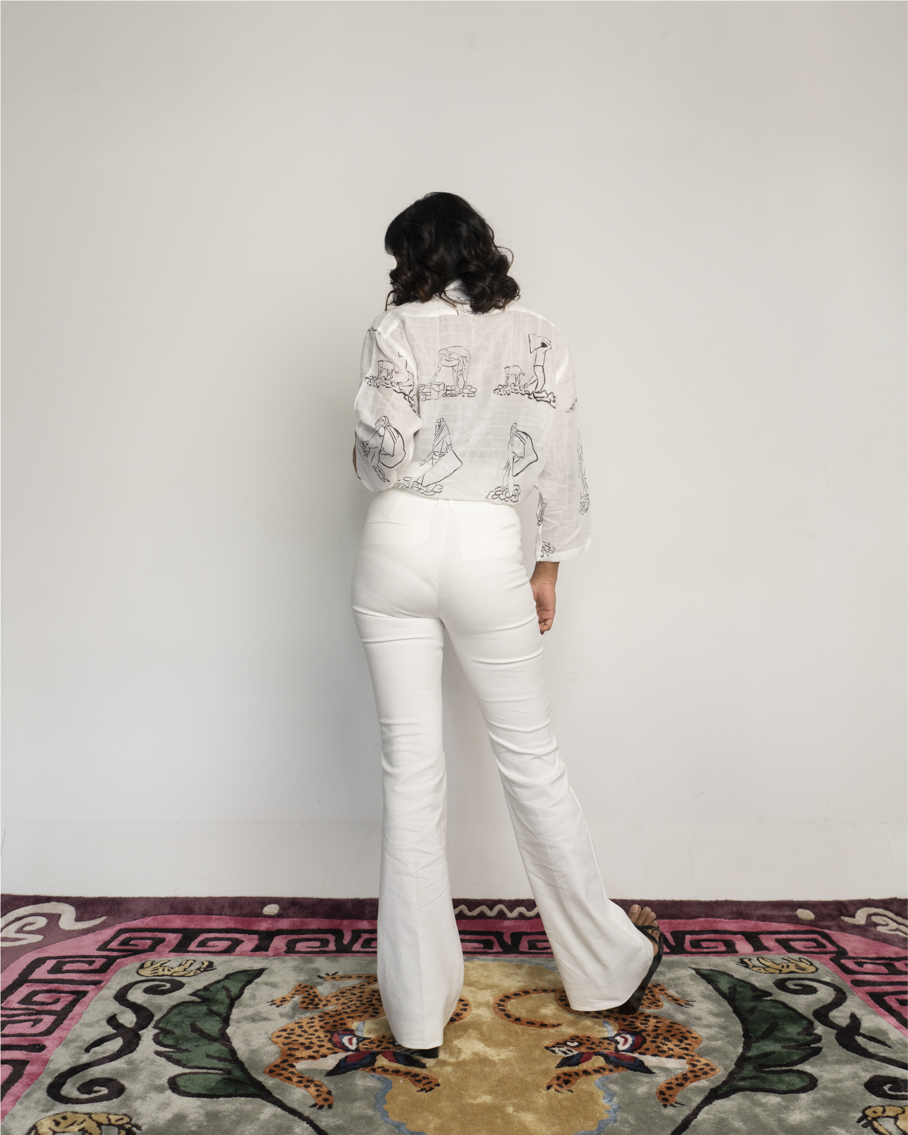 This shirt is made from organic muslin and printed with biodegradable dyes. Each shirt is cut and made upon order, and therefore the print placement will vary from the design shown on screen.